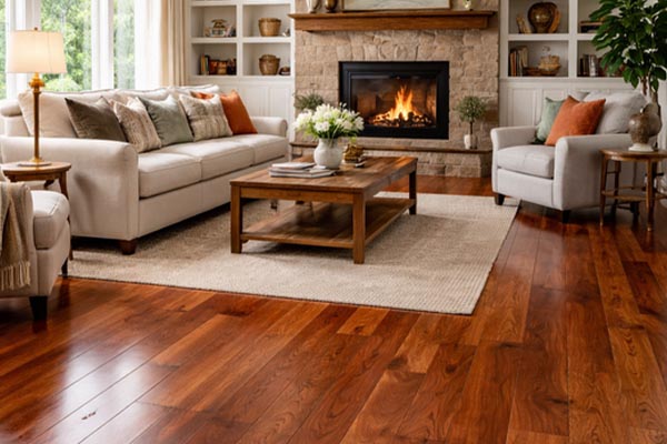 American Cherry is prized for its elegance and remarkable color transformation. While it begins as a soft pinkish – tan, it matures into a deep, rich reddish-brown when exposed to natural light. A solid cherry floor is perfect for homeowners who want a smooth, fine-grained surface that brings a sense of traditional luxury and a natural “glow” to any room.