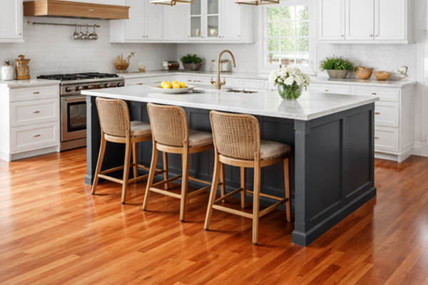 Natural Patina: Cherry is one of the few woods that actually looks better with age. Its transition from a light salmon to a deep, burnished red is a hallmark of authentic solid wood. Fine, Smooth Grain: Unlike the deep textures of Oak, Cherry has a very subtle, satiny grain pattern. It feels incredibly smooth underfoot and provides a “soft” visual that complements both traditional and colonial architectures.